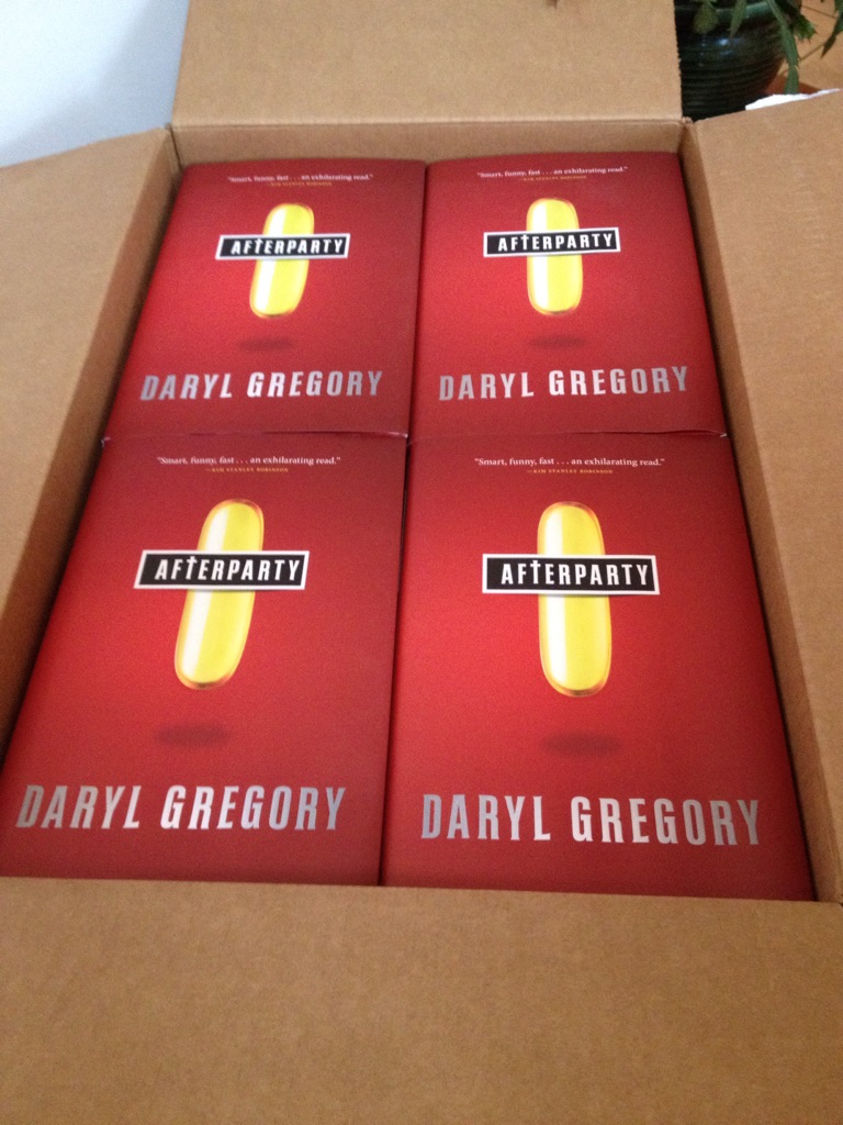 Where was I? Oh, right. The last time I updated this blog, it was August. The UK edition of Afterparty came out, and there was a swell party at the Worldcon in London where the cover of the book was on a cake with a bunch of other covers. I planned to eat my own words–ha ha! Get it? — but someone else ate my cover when I wasn’t looking.